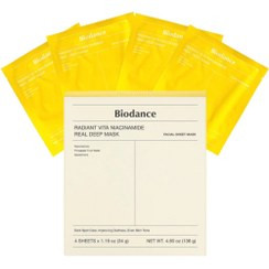 ماسک ورقه ای زرد حاوی نیاسینامید بایودنس حجم 34 گرم 4 عددی