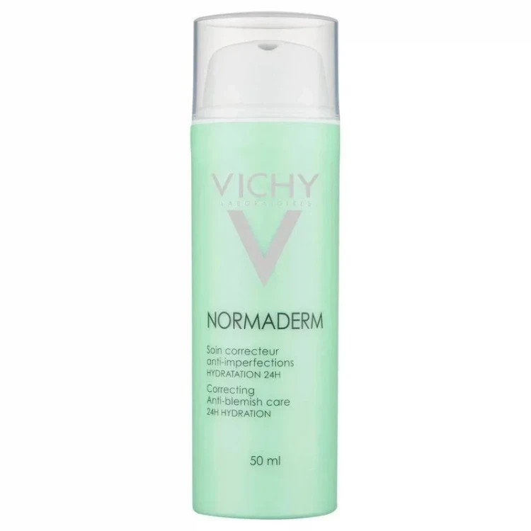 کرم آبرسان و ضد آکنه و ویشی (Vichy Normaderm Global Anti Blemish Lotion 50ml) تمام 6 مشکل پوستهای آکنه دار یعنی التهاب، منافذ باز، براقی، قرمزی، جای جوش و ناهمواریهای پوست را از بین میبرد و پوست تنها پس از 7 روز استفاده سالم تر و شفاف تر خواهد شد. عملکرد کلی این لوسیون در درمان پوستهای آکنه دار وابسته به اثربخشی مواد موثر آن در لایههای مختلف پوست میباشد، همچنین این محصول با اثر مرطوبکنندگی و ماتکنندگی خود از خشکی پوست بعد از درمان آکنه و براق شدن آن جلوگیری میکند. این لوسیون آکنه های پوست را به طور سریع درمان می کند و هیچگونه عوارض جانبی نخواهد داشت و بدون ایجاد چربی و چسبندگی به سرعت جذب پوست می شود و با تاثیر ماندگار پس از اتمام دوره درمان به بهبود پوست کمک می کند.