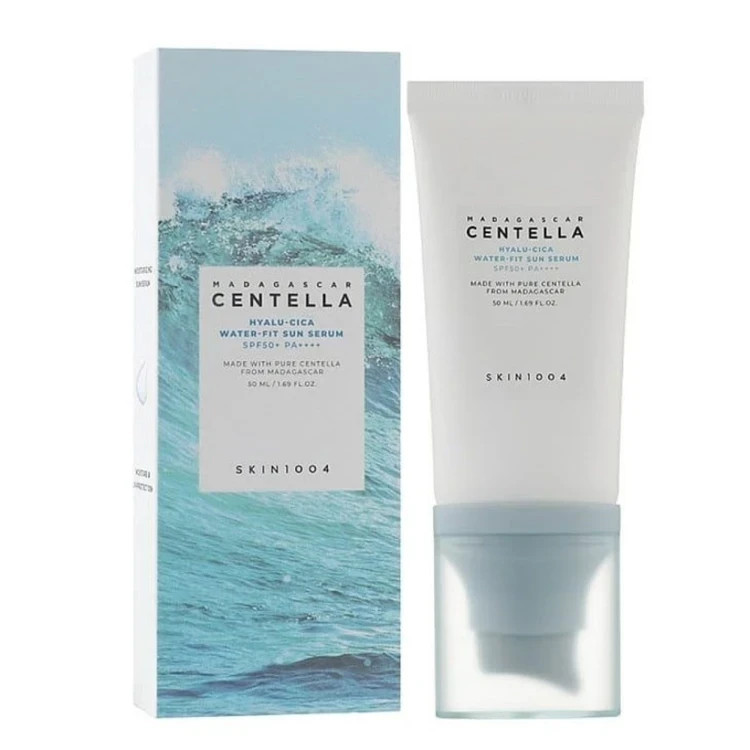 ضد آفتاب سنتلا SKIN 1004 هیالو سیکا ضد آفتاب واتر فیت سنتلا هیالو سیکا، یک ضد آفتاب ملایم، مرطوب کننده و سبک برای انواع پوست از جمله پوست های حساس و مستعد آکنه است. این کرم ضد آفتاب اسکین 1004 حاوی مقدار زیادی اسید هیالورونیک است، این ماده که عمیقا مرطوب کننده و آبرسان است، حاوی عصاره تسکین دهنده سنتلا آسیاتیکا میباشد، که با هم به طور موثری به رفع تحریک و قرمزی پوست کمک می کند و در طول روز مرطوب و با طراوت نگه می دارد. ضد آفتاب سنتلا این کرم ضد آفتاب با توکوفرول غنی از آنتی اکسیدان (ویتامین E) و چای سبز و همچنین نیاسینامید روشن کننده برای حفظ سلامت پوست و جلوگیری از آلودگی و التهاب؛ غنی شده است. فرمول سبک و سرم مانند این محصول بی نظیر، به سرعت جذب پوست می شود